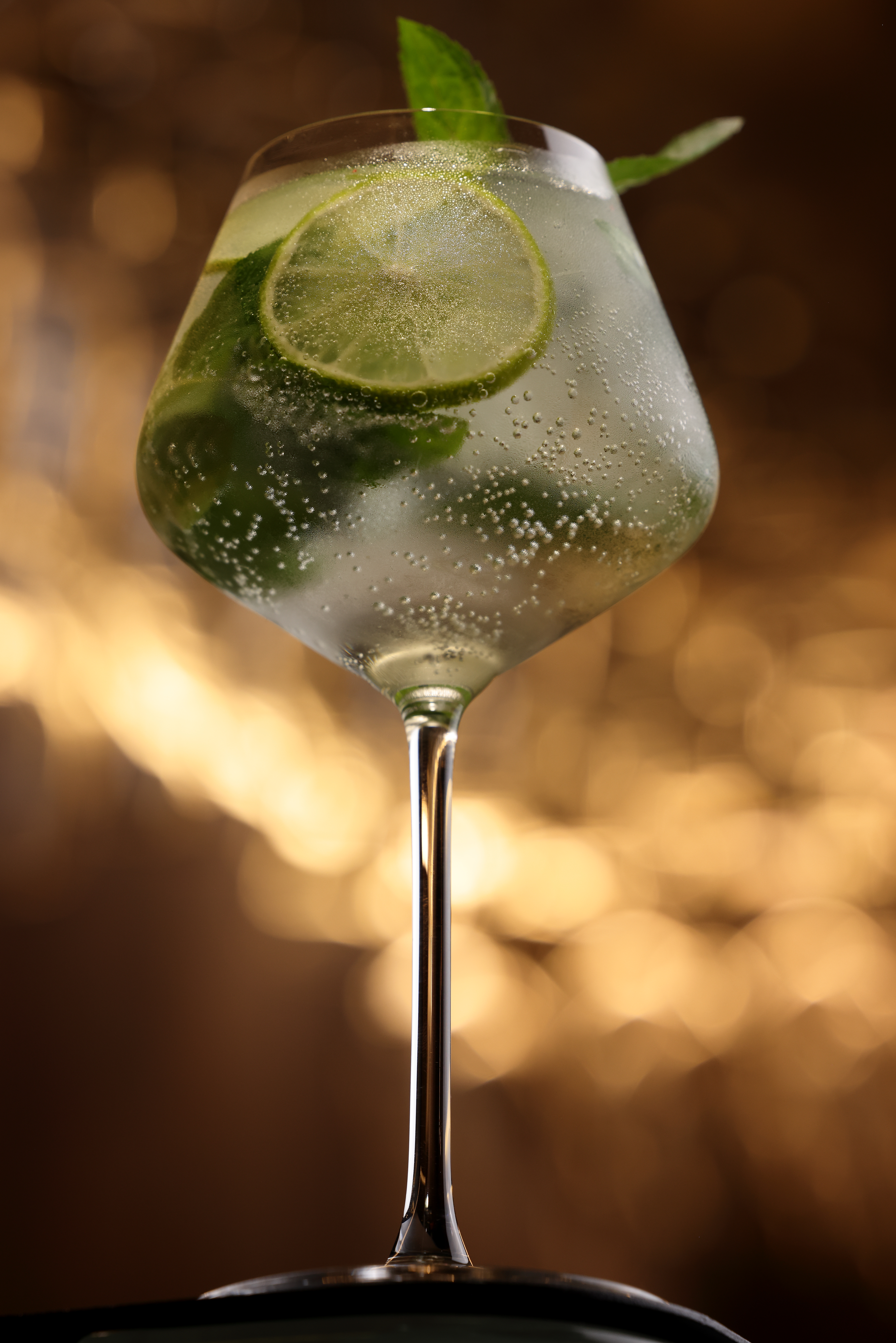 Vin spumant, sirop de flori de soc, mentă, lime.